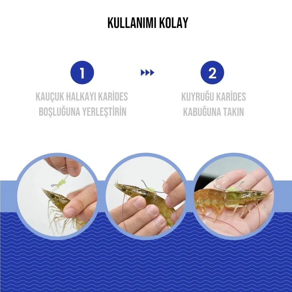 5 cm ve üzeri karidesler için uygundur. Paket içersinden 25 adet Aparat ve 25 Adet Özel Silikon Lastik Çıkmaktadır.
