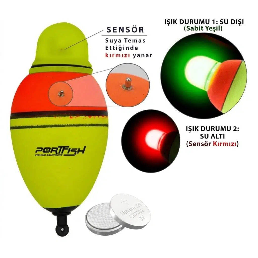 Portfish İthal Akıllı Sensörlü Şamandıra – Suya Batınca Renk Değiştiren LED’li (25g - 80g Arası)