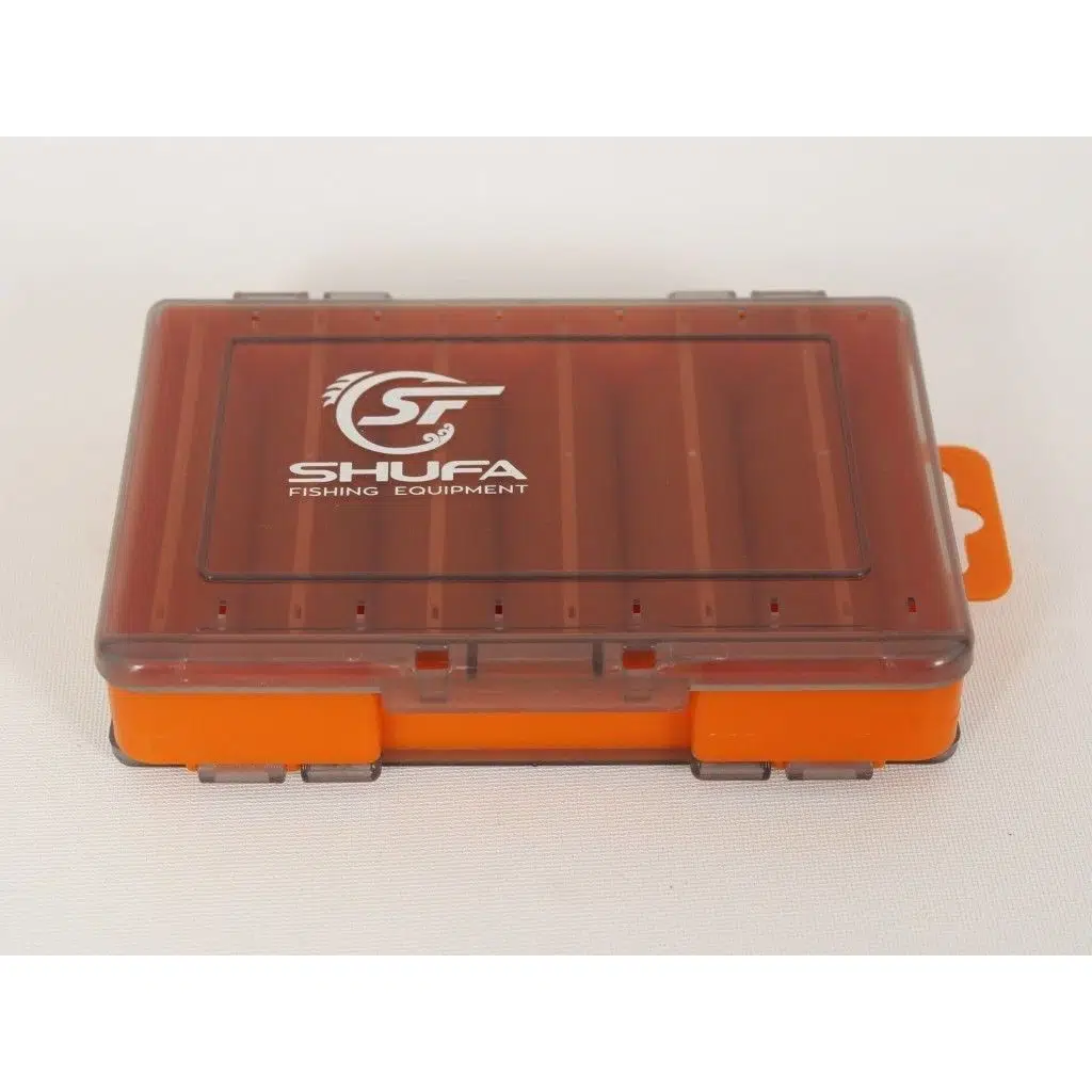SHUFA Lure Box 130 mm turuncu çift taraflı kutu, maket yemlerini düzenli taşımak isteyen kullanıcılar için pratik, hafif ve kullanışlı bir ekipman kutusudur.
