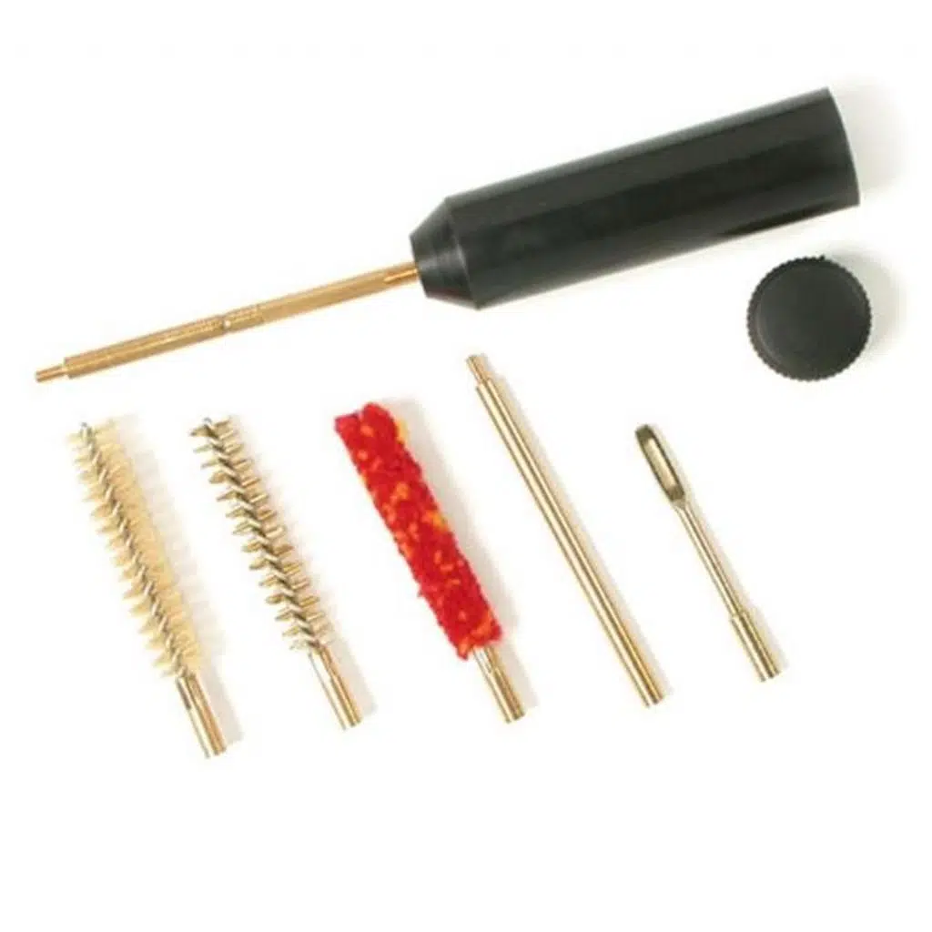 Blister pirinç uç, 3 adet temizleme aparatı ve kumaş silme bezinden oluşan silah temizleme takımı.